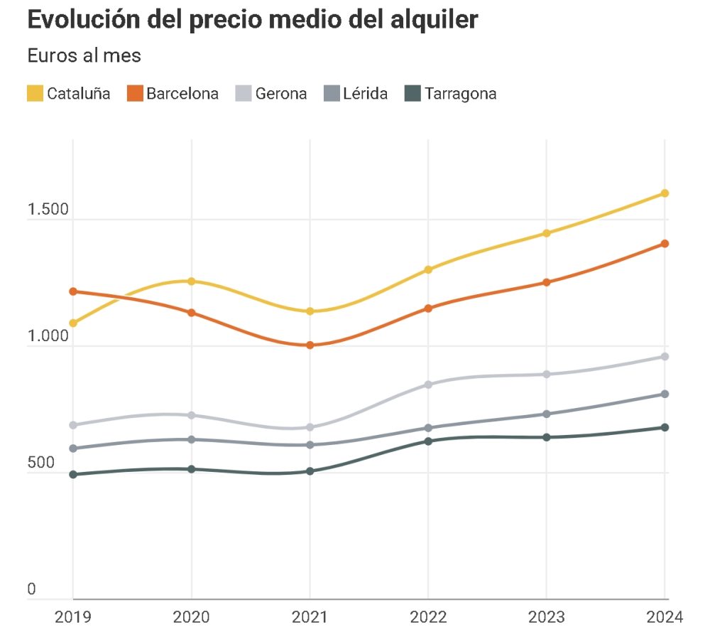 En cuanto al precio, pese a la limitación, la media del 2024 cerró en los 1.604 euros al mes, lo que supone un incremento del 10,92% frente a los 1.446 euros al cierre de 2023 en Barcelona. Si bien es cierto, que desde la compañía apuntan que el ajuste en los precios será progresivo y ya en el último trimestre del año el incremento de los precios apenas rozo el 1%.